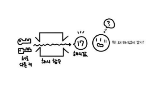 서로 다른키에 대해 해시 함수 결괏값이 같은 경우 "충돌"이 발생함